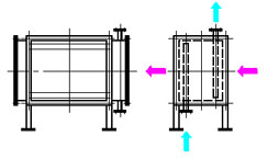 蒸氣式氣體加熱器 加熱空氣或排氣的熱交換器。用蒸氣作為熱源,不管蒸氣過熱、高、中,或是低壓蒸氣全都可以。